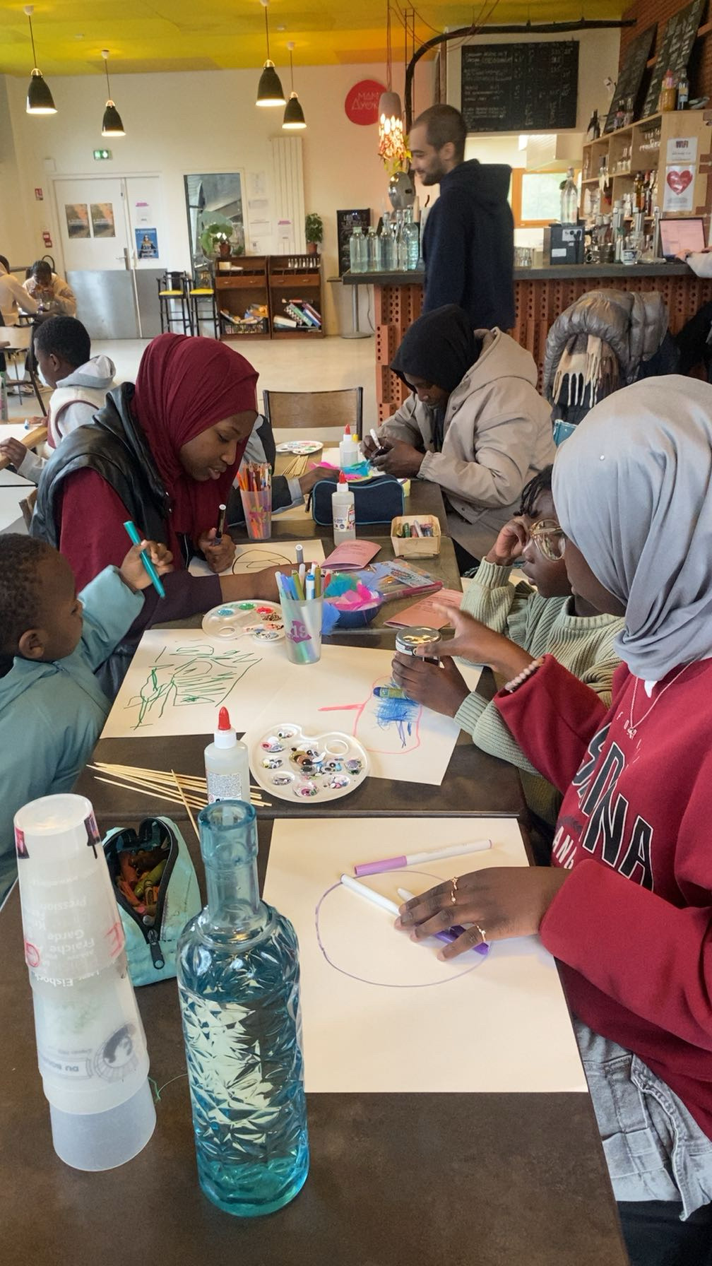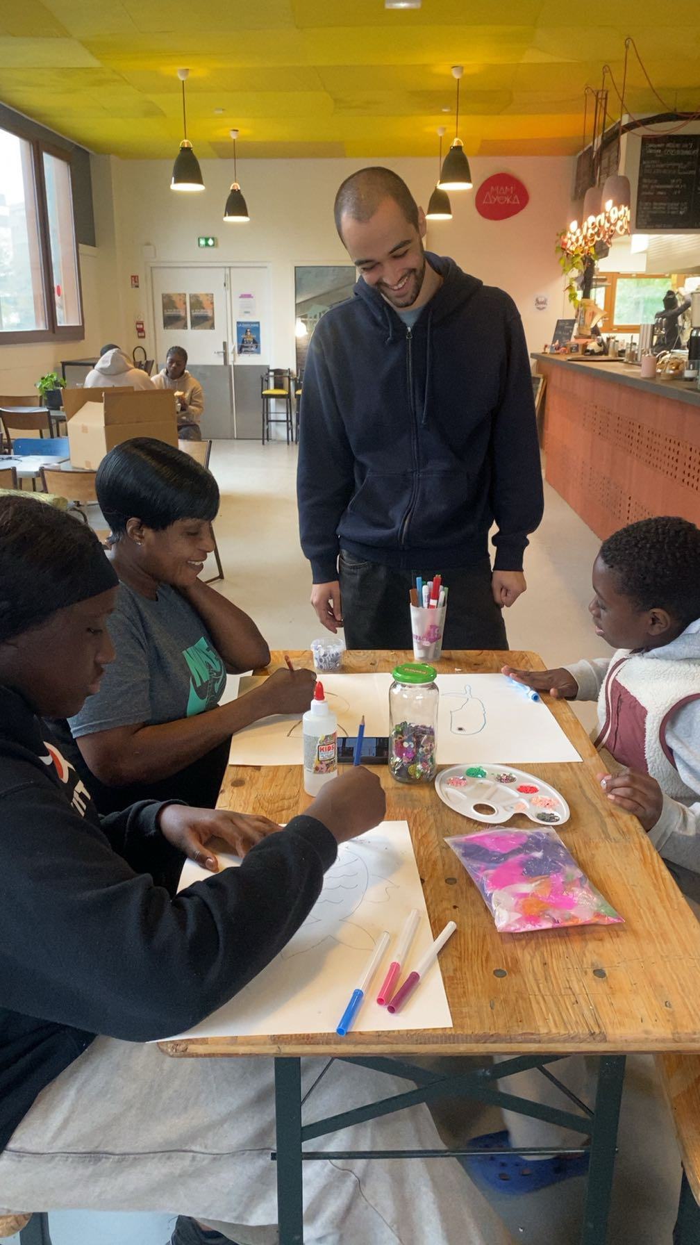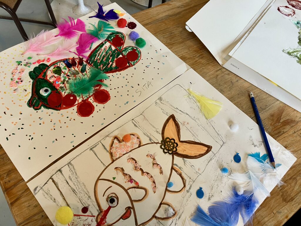 En ce mercredi 1er avril, les familles se sont réunies au TLM autour d’un atelier créatif animé par Fares, intervenant bénévole et artiste. L’objectif ? Laisser parler son imagination en personnalisant et en créant son propre poisson… ou animal marin aux pouvoirs magiques ! Petits et grands se sont prêtés au jeu avec enthousiasme, inventant des créatures uniques dotées de capacités extraordinaires. Très vite, l’atelier a pris une tournure ludique : à la manière d’un jeu inspiré de Pokémon, les participants ont imaginé des duels entre leurs poissons. Pics, lasers, écailles fleuries, roues pour aller sur la terre, plume et strass protecteurs… chacun a rivalisé de créativité pour rendre son poisson le plus puissant possible. Dans une ambiance à la fois calme et joyeuse, chacun a ensuite présenté sa création en expliquant ses pouvoirs et ses particularités. Un beau moment de partage où chaque poisson, aussi différent soit-il, avait toutes les chances d’être le meilleur. Et non… ce n’était pas un poisson d’avril !