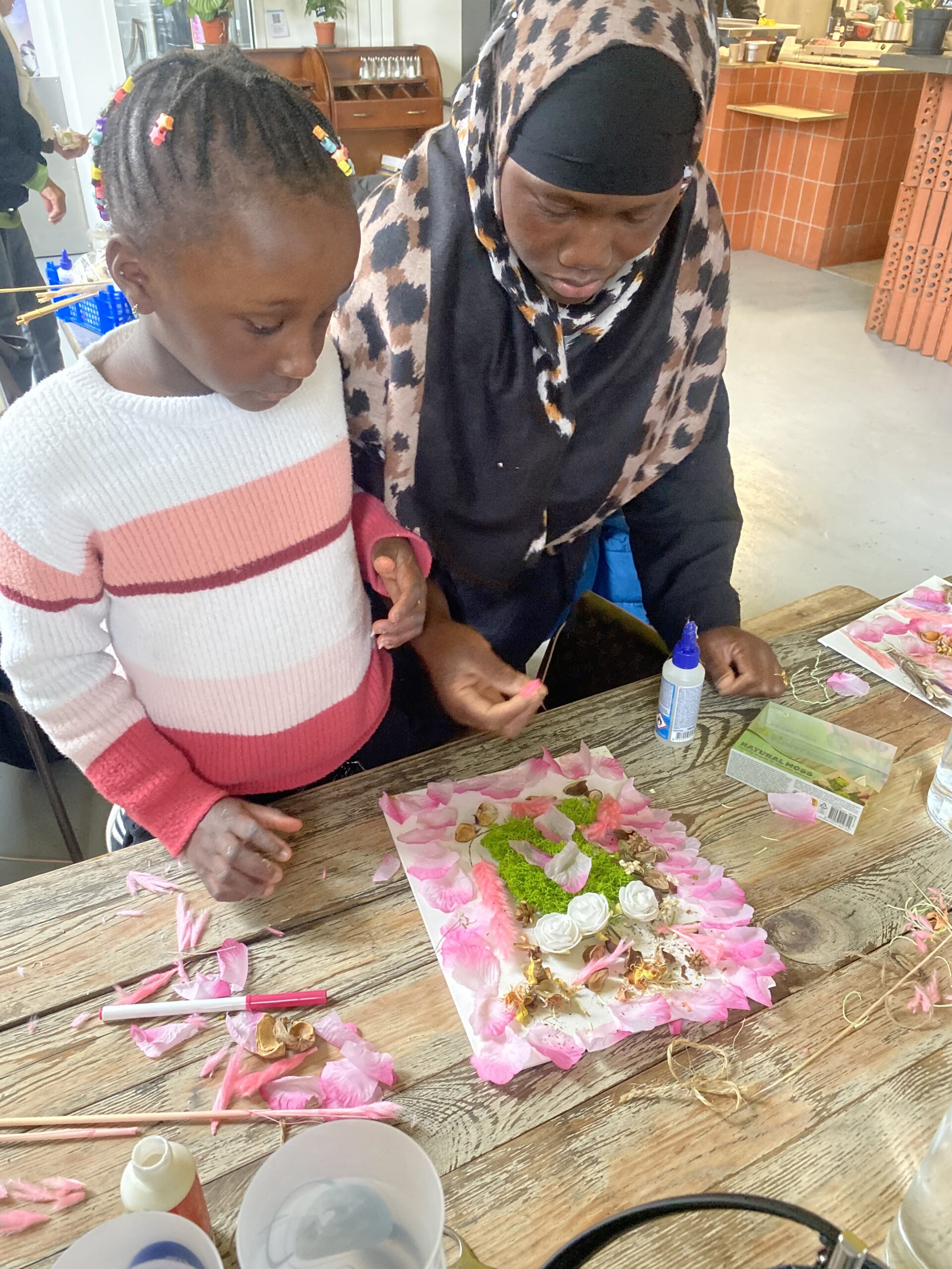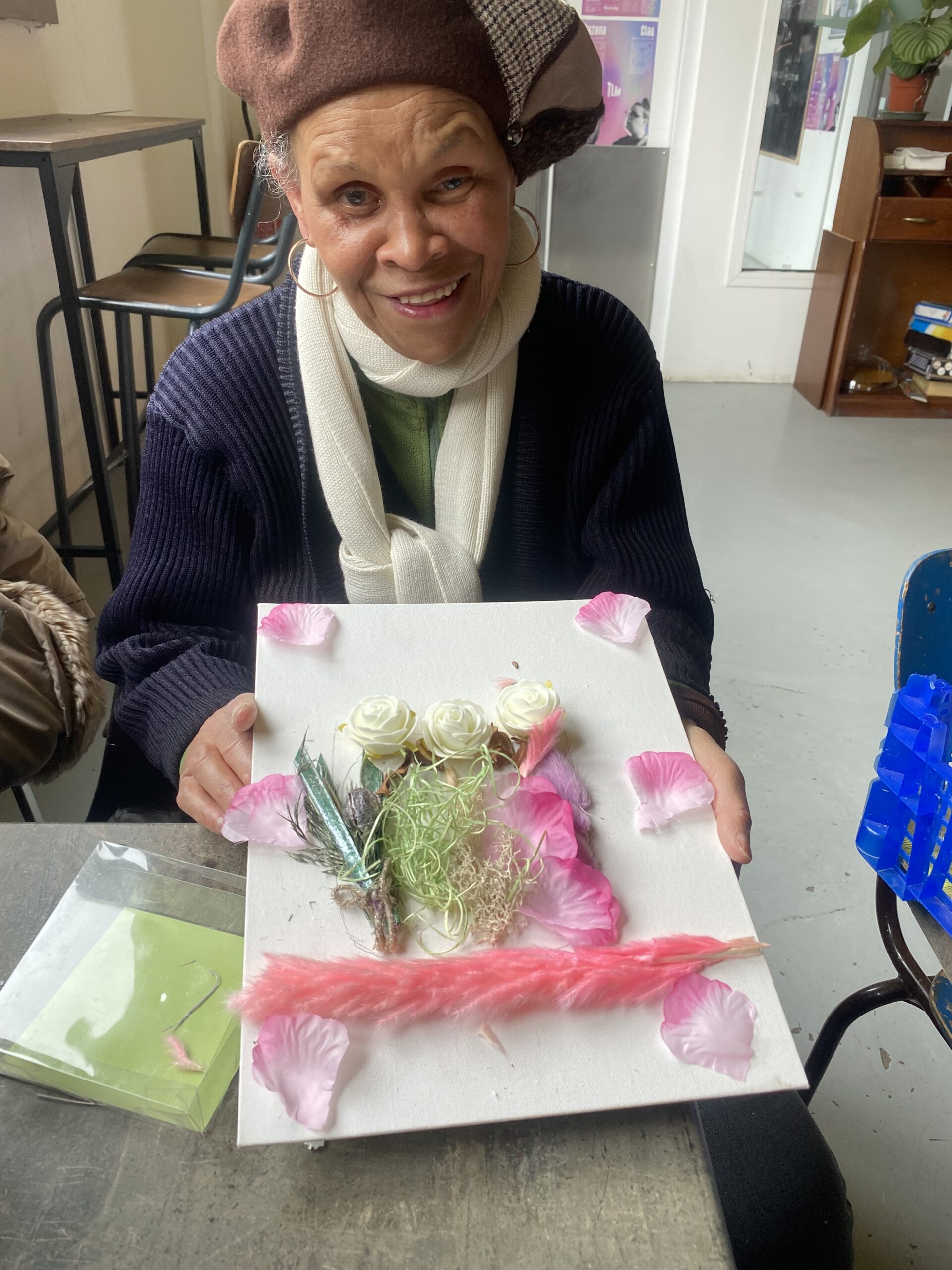 Au TLM, le temps d’un après-midi, les générations se sont retrouvées autour d’un atelier créatif tout en douceur et en couleurs. Seniors, parents et enfants d’Espace 19 Cambrai ont partagé bien plus qu’une activité manuelle, un véritable moment de calme et de création. Pétales roses, mousse végétale, fleurs blanches, plumes délicates… chacun compose son tableau floral avec patience et imagination. Les seniors partagent leur sens du détail, les plus jeunes apportent spontanéité. Ensemble, ils créent des œuvres uniques, à leur image. Une participante senior, fière de son tableau, rayonnait en présentant sa création. À ses côtés, des mamans accompagnaient leurs enfants dans le choix des couleurs et l’assemblage des matières. Au-delà de la création artistique, c’est la richesse des échanges qui marque les esprits : discussions, rires discrets, concentration partagée. Ce moment à permis à chaque participants de laisser libre cours à son imagination.