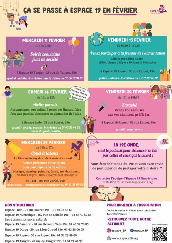 Voici le programme du mois de février dans nos structures.