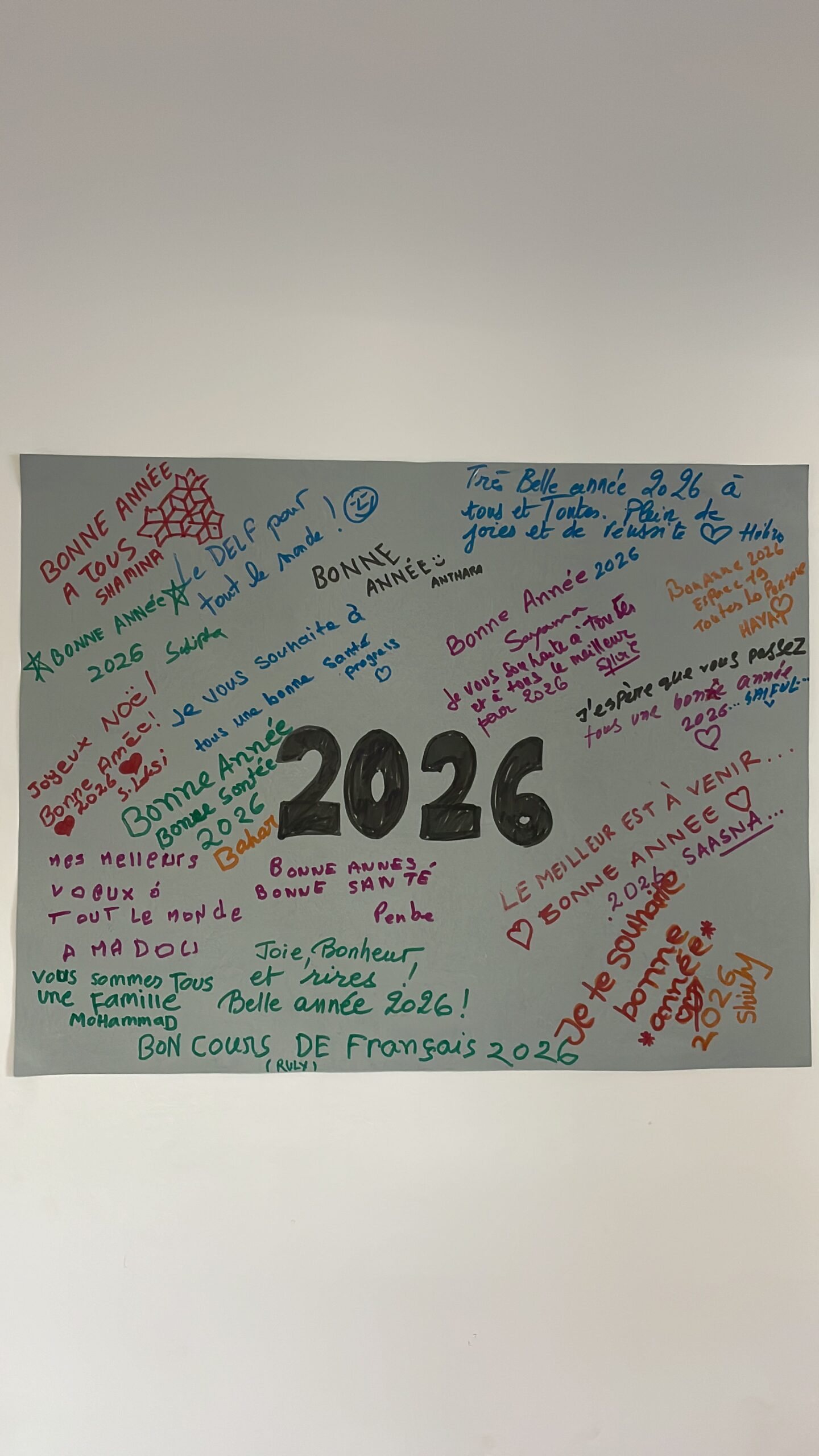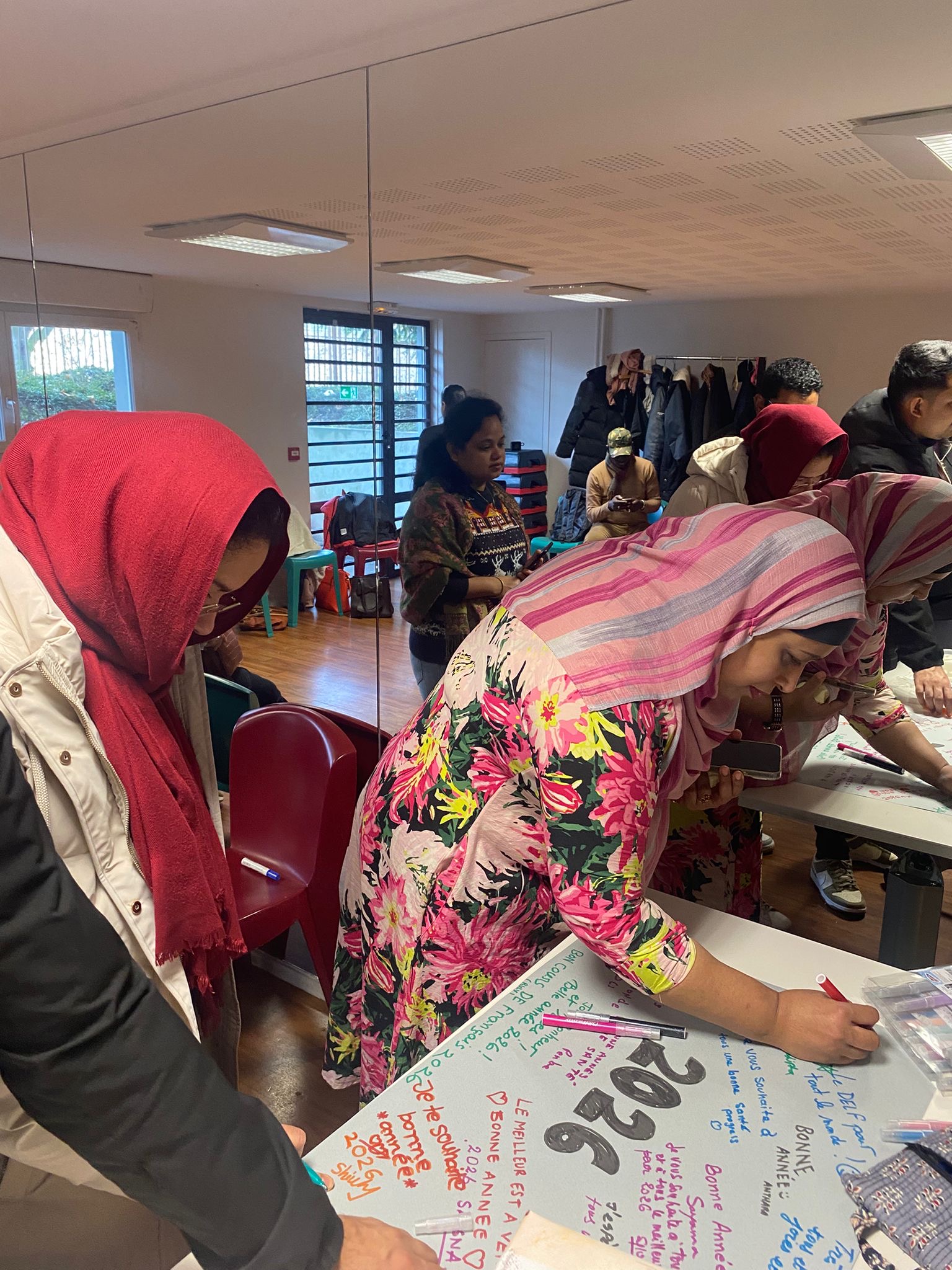 Bénévoles et apprenant·es des ASL de Cambrai se sont retrouvé-es autour d’animations conviviales en équipe, l’occasion de partager rires et bonne humeur, mais aussi de déguster quelques spécialités culinaires. Ensemble, ils ont également rédigé une grande carte de vœux collective pour 2026. Un joli moment partagé pour clore l’année !