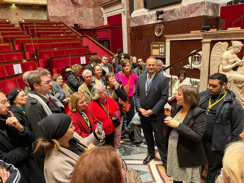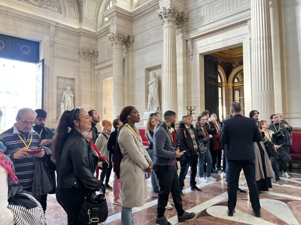 Samedi 11 octobre, nous avons eu le privilège de participer à une visite de l’Assemblée nationale, à l’invitation de Mme Sarah Legrain, députée du 19ᵉ arrondissement de Paris. L’Assemblée nationale, située au Palais Bourbon, est l’une des deux chambres du Parlement français. Elle joue un rôle essentiel dans la vie démocratique du pays : ses députés y débattent, proposent et votent les lois, tout en contrôlant l’action du gouvernement. Ce lieu emblématique, riche d’histoire et de symboles républicains, incarne le cœur du pouvoir législatif en France. Accompagnés de Mme Legrain et d’un guide, nous avons découvert les coulisses de cette institution : la majesté de la salle des séances, les salons historiques, ainsi que les nombreuses œuvres d’art qui retracent les grandes étapes de la République. Cette visite a été une expérience instructive et captivante, nous permettant de mieux comprendre le fonctionnement de la démocratie française et l’histoire de ce lieu chargé de mémoire. La matinée s’est conclue par un temps d’échange convivial avec notre députée, durant lequel nous avons pu aborder les préoccupations et questions des adhérents d’Espace 19 Cambrai. Ce moment privilégié a permis un dialogue ouvert autour des enjeux locaux et nationaux qui nous concernent.