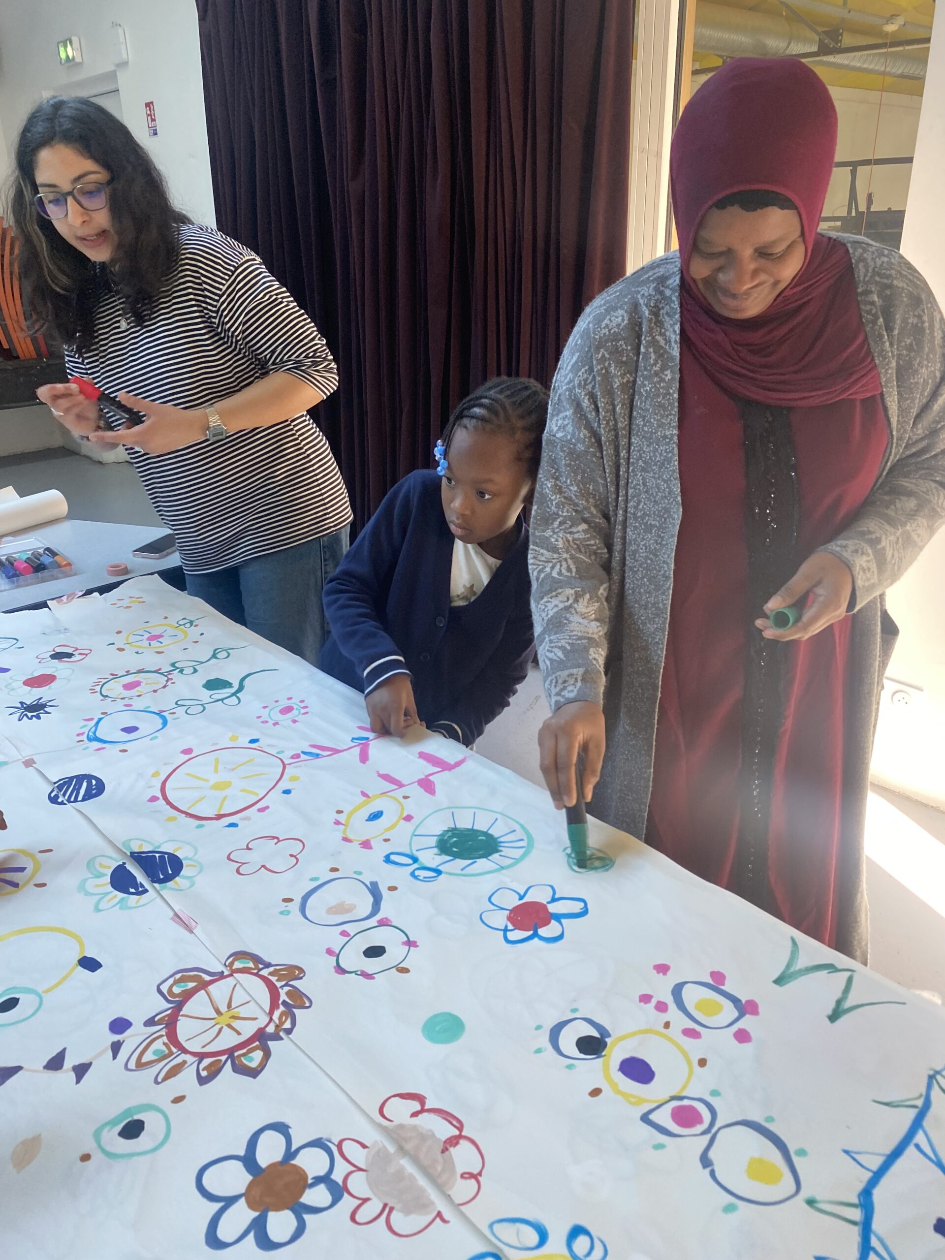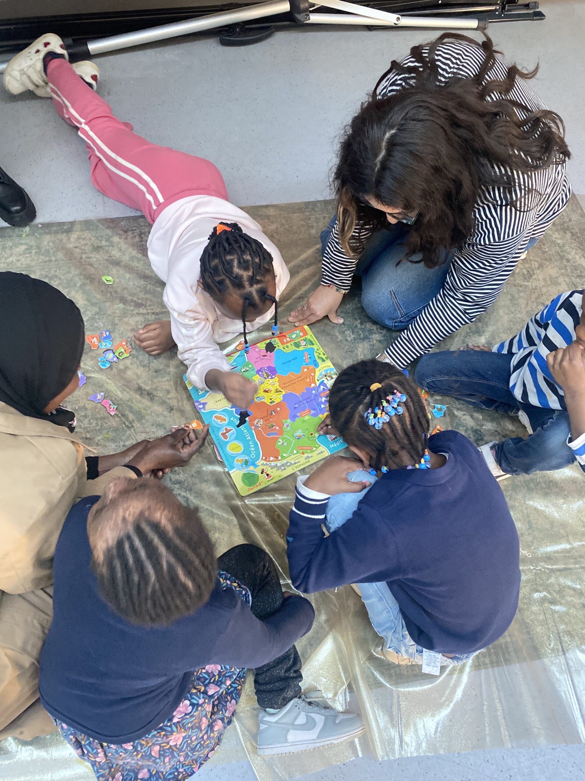 Le mercredi 11 mars, le pôle famille d’Espace 19 cambrai a organisé un atelier artistique en partenariat avec l’Association Rosetta, accueilli chaleureusement par Le TLM sur le thème de la France. Cet après-midi créatif a rassemblé enfants, parents et intervenants autour d’un projet commun, la réalisation d’une fresque collective. Cet atelier avait pour objectif de favoriser l’expression artistique, la créativité et la coopération. Chacun a pu contribuer à sa manière , certains imaginaient des formes originales, d’autres ajoutaient des couleurs ou complétaient les dessins déjà présents. La fresque s’est ainsi construite collectivement, dans une ambiance conviviale et bienveillante. Pour clôturer l’après-midi, les enfants se sont retrouvés autour d’un puzzle représentant la carte de la France. Ensemble, ils ont cherché les bonnes pièces et reconstitué progressivement le territoire. Ce moment ludique a permis de mêler jeu et apprentissage, en découvrant les différentes régions tout en développant l’esprit d’équipe et la réflexion.
