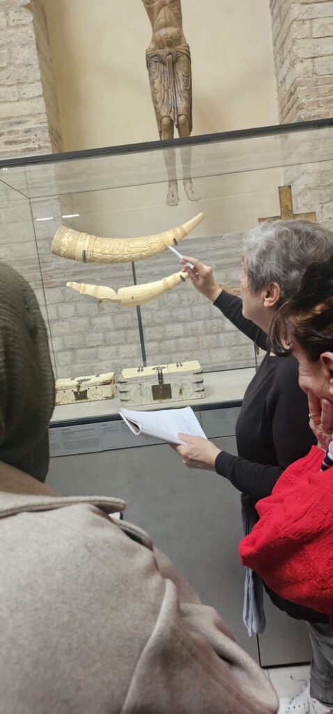 Cette sortie culturelle a été l’occasion de découvrir les œuvres du musée de manière ludique et sensorielle, en faisant appel aux cinq sens. Les participant·es ont observé, touché, senti, décrit les formes, les matières et les décors, et se sont amusés à deviner l’usage d’objets anciens comme un encensoir ou une salière.